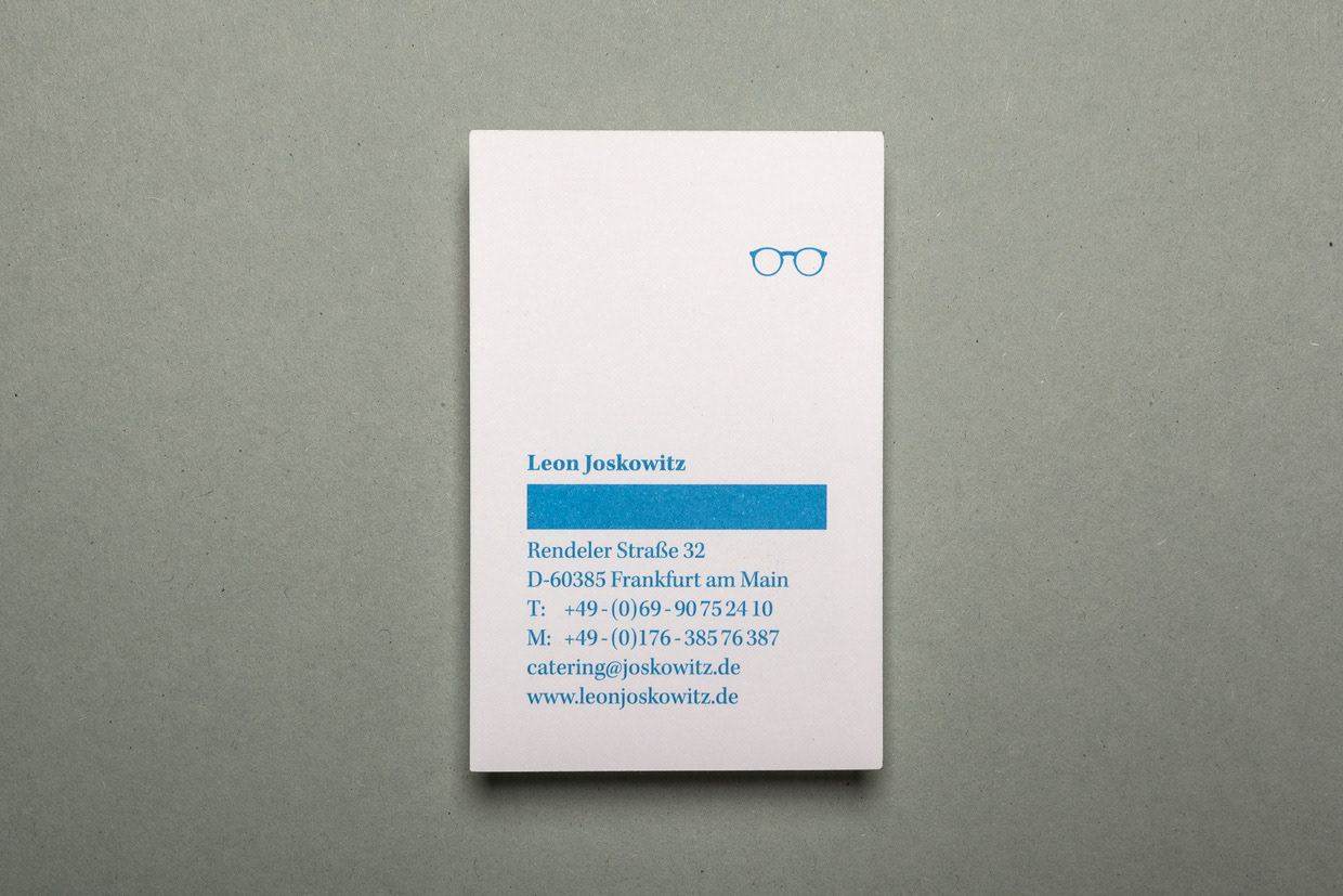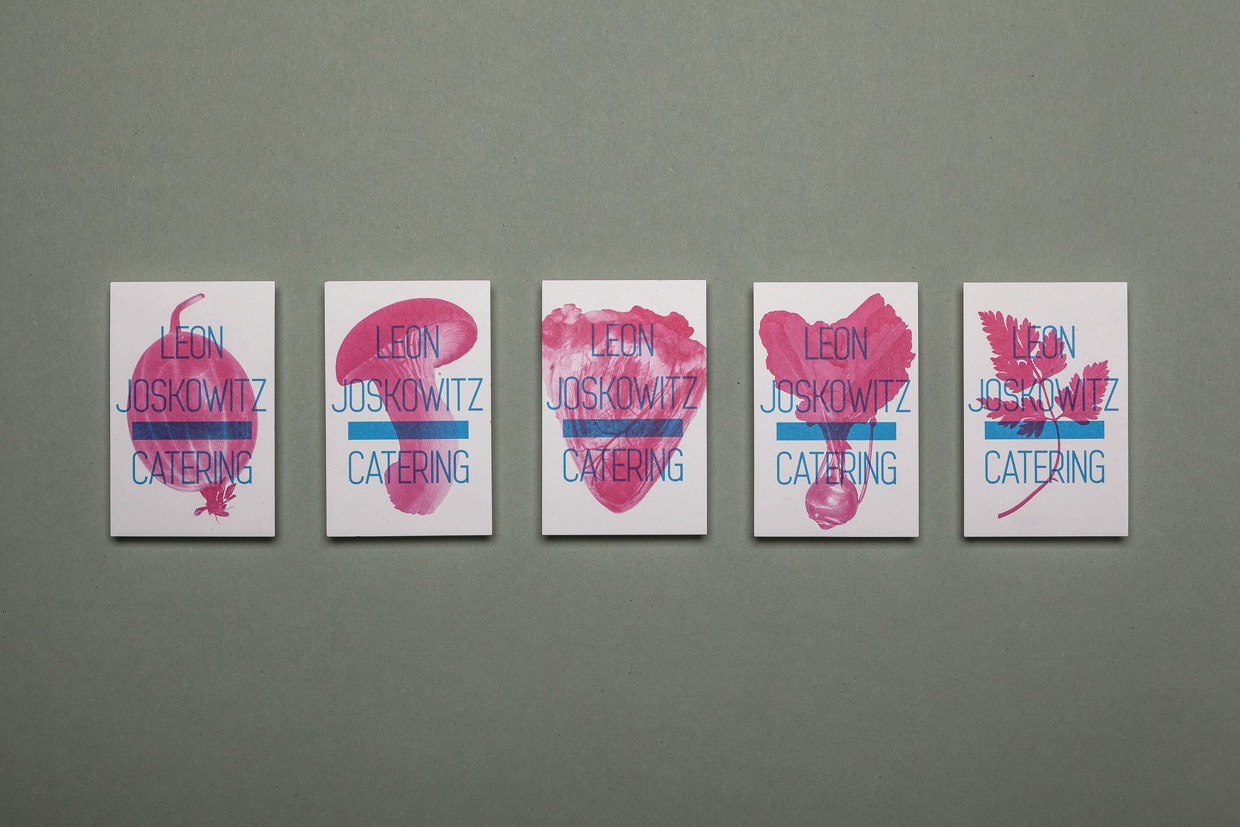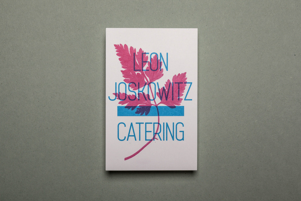 Business cards for a chef named Leon Joskowitz. He studied and finished philosophy and traveled the world to extend his culinary horizon before he became a caterer. www.leonjoskowitz.com