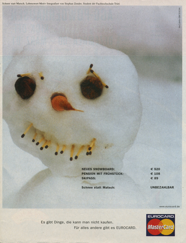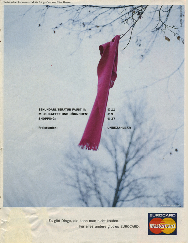 The famous "worth living for" Ads from Mastercard, in the discontinued jetzt: magazin of the "Süddeutsche Zeitung".