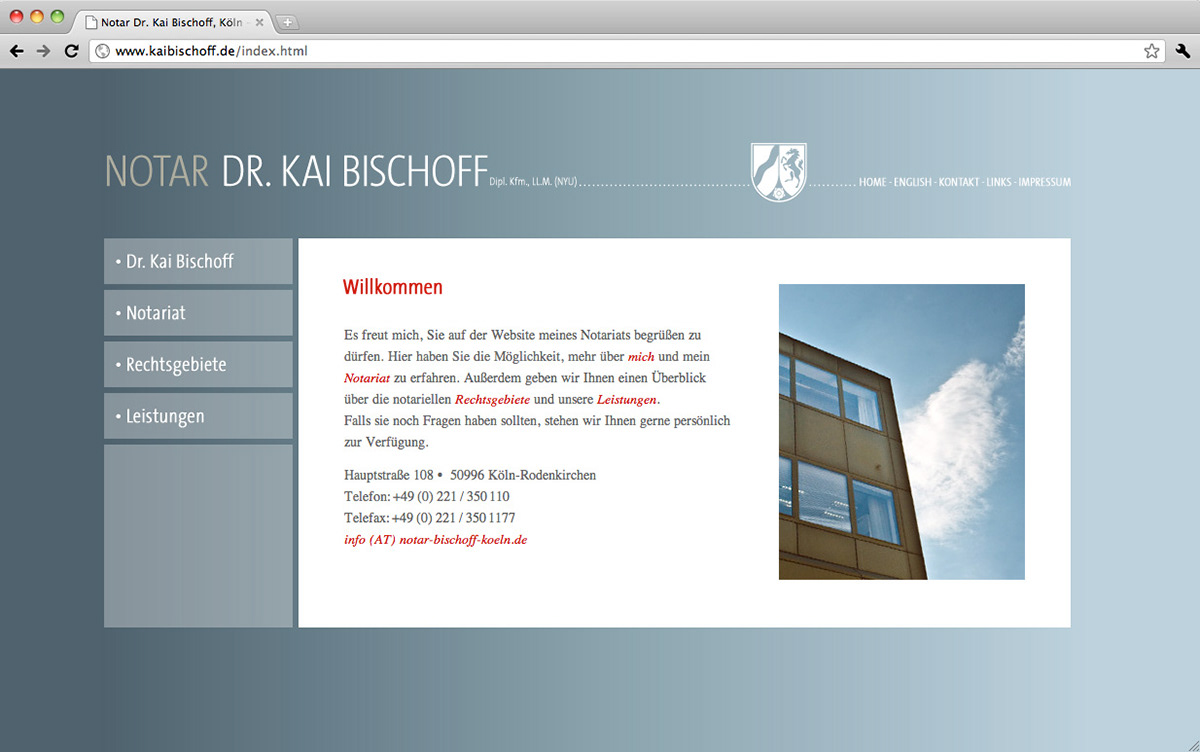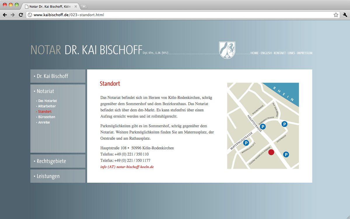 The complete Corporate Design, from Letterhead over Business Card up to a Web Site, for a german Notary.