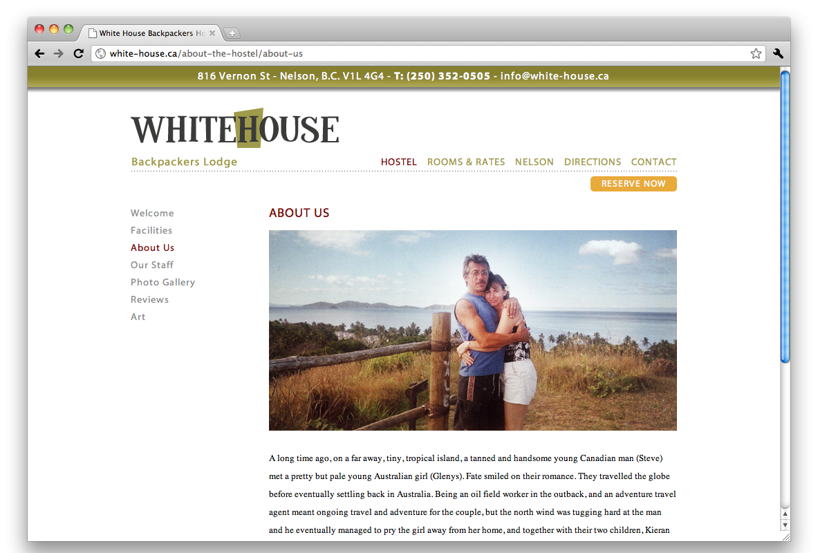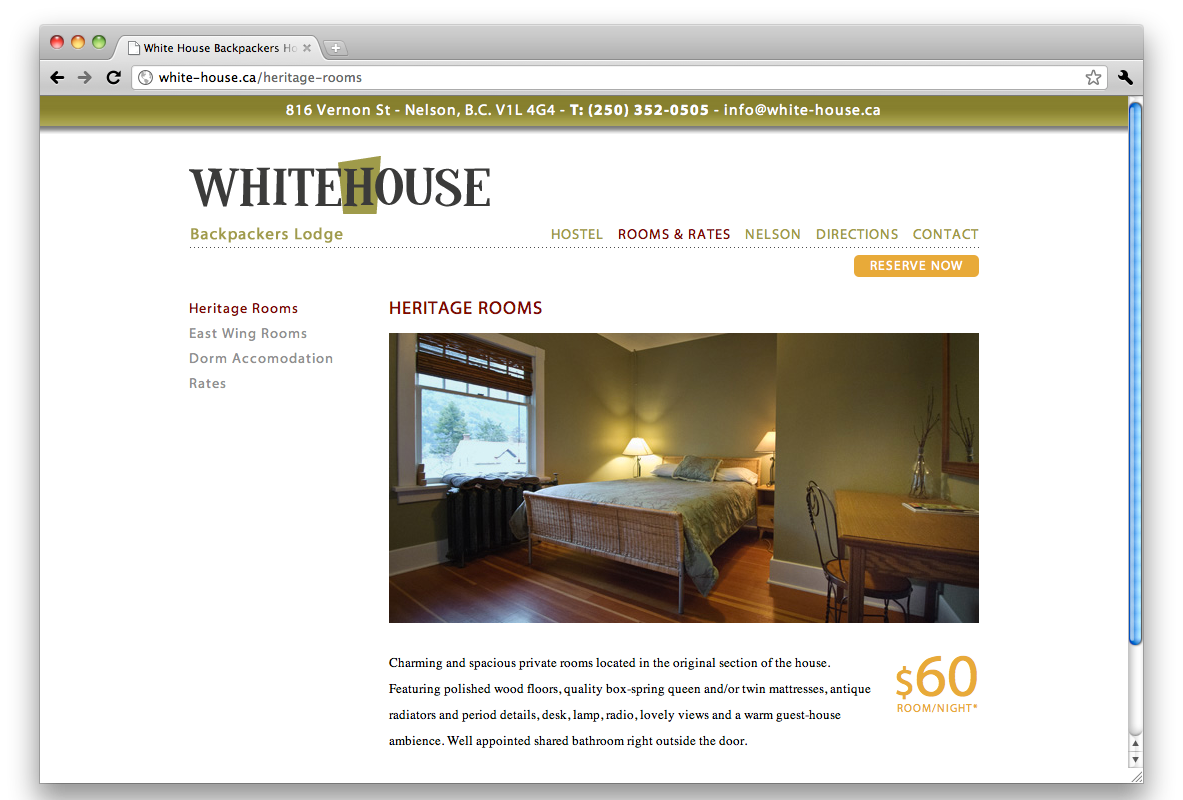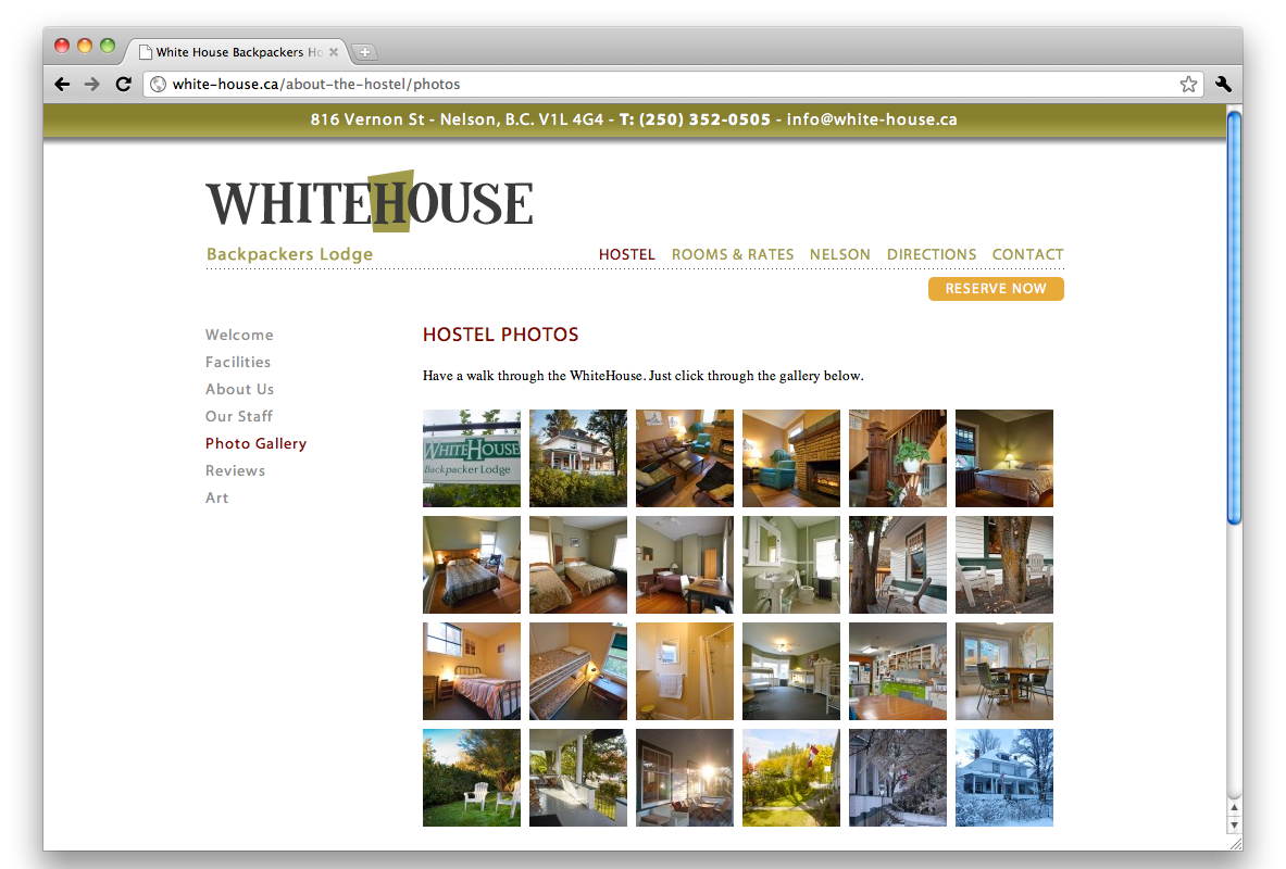 Website for the WhiteHouse Backpackers Lodge in Nelson B.C. www.white-house.ca