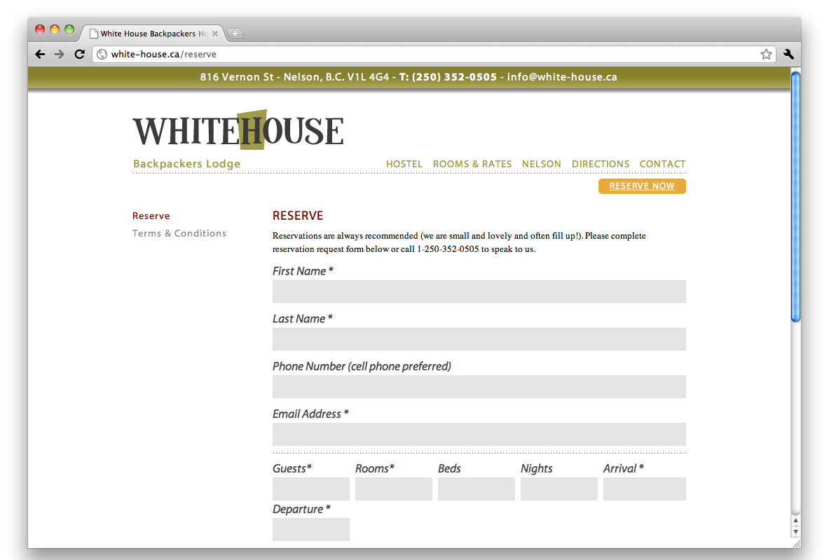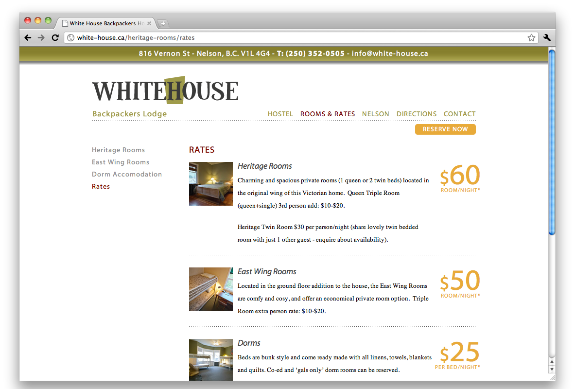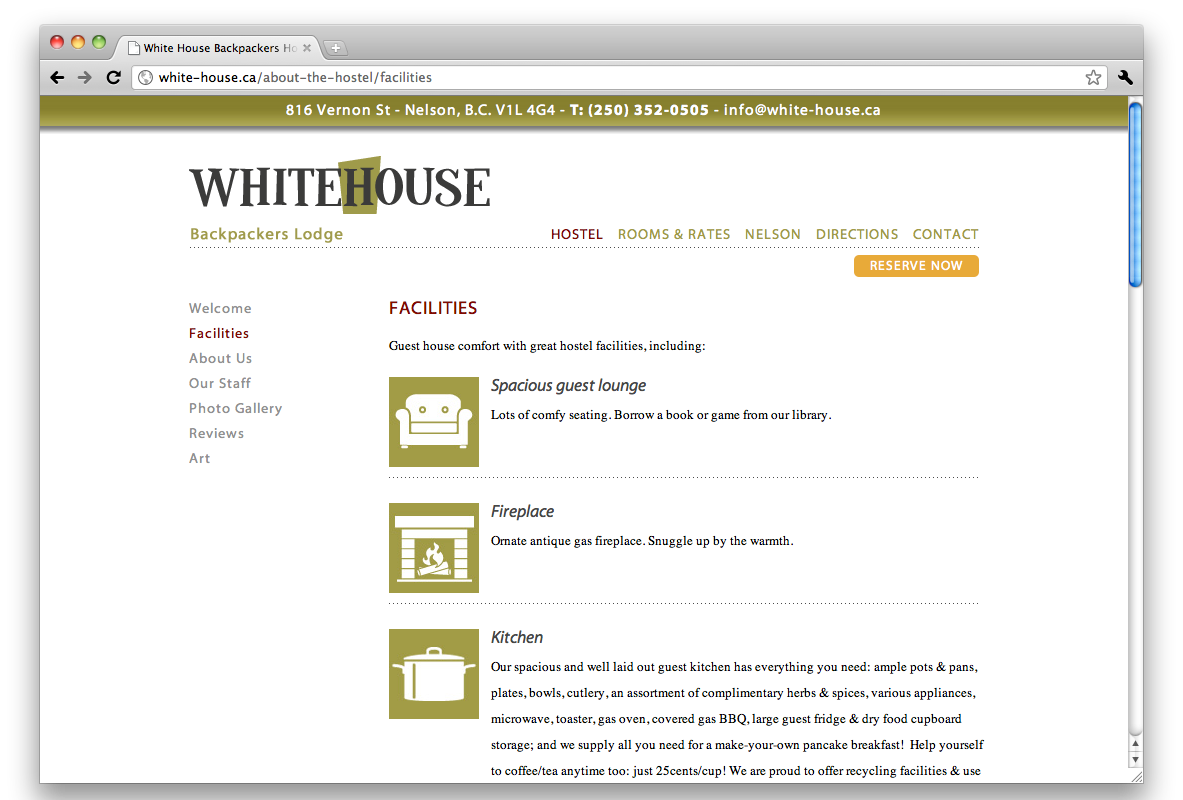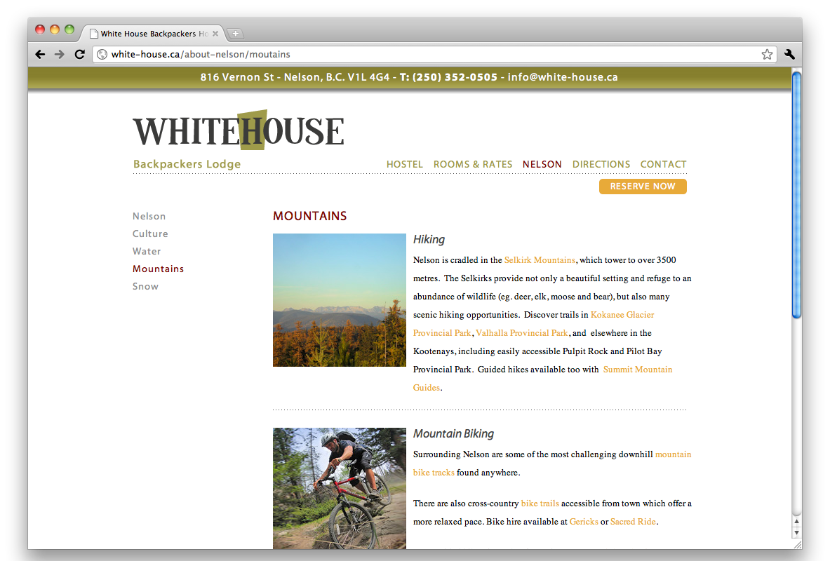 Website for the WhiteHouse Backpackers Lodge in Nelson B.C. www.white-house.ca